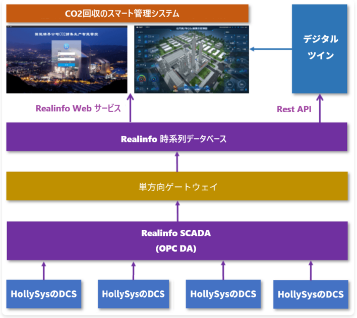 データ管理では、Realinfo SCADA / Iotプラットフォームと時系列データベースを採用し、統一されたCCUS生産データプラットフォームを構築。各種装置・設備からのデータを収集、保存、分析、表示し、データ共有を可能としています。