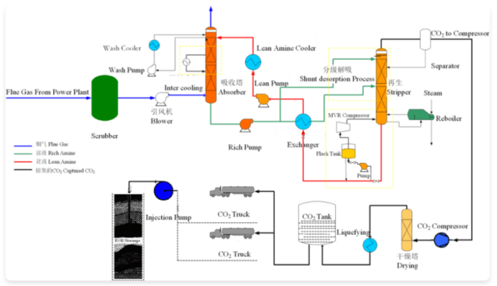 錦界発電所のCCUSプロジェクトは、2019年11月に建設を開始し、2021年1月に設置を完了、168時間の試運転を経て純度99.5%の工業用液体二酸化炭素の連続生産に成功しました。石炭火力発電所からの排ガス中における大規模CO2回収を実現し、現在では石炭焚き発電所における燃焼後CO2回収と石油増進回収・貯蔵を組み合わせたフルチェーンの大規模実証プロジェクトとして運用されています。