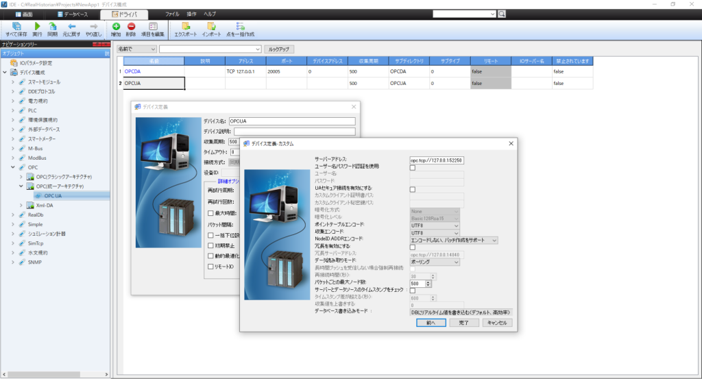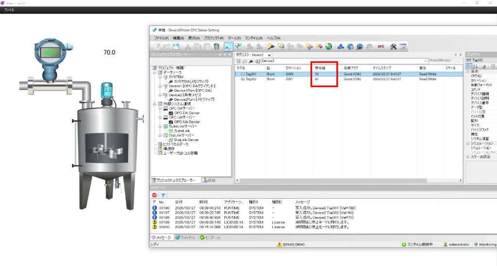 RealSCADAを実行すると、OPCサーバーとのデータアクセスが開始されます。