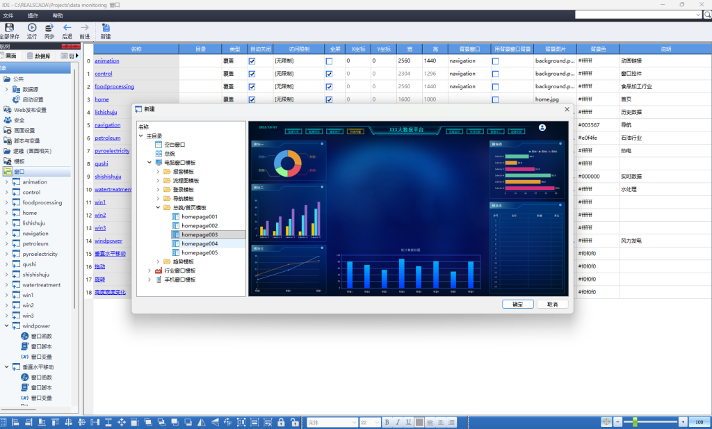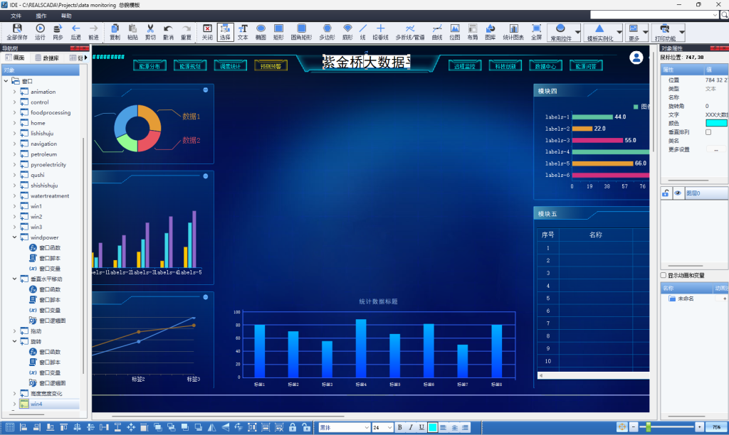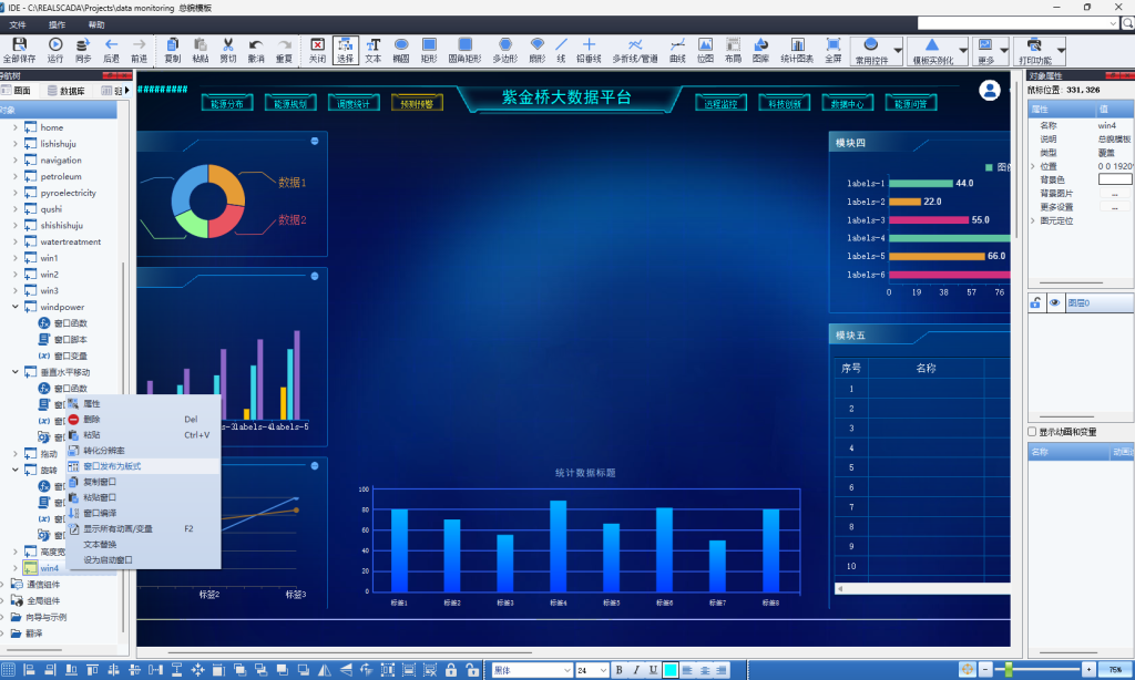 为避免设计一个新的组态界面时,把精力常耗费在构建基础框架这些繁琐重复的步骤上,紫金桥的内置窗口模板库,为客户提供多套成熟、专业的界面框架,满足多种专业需求。